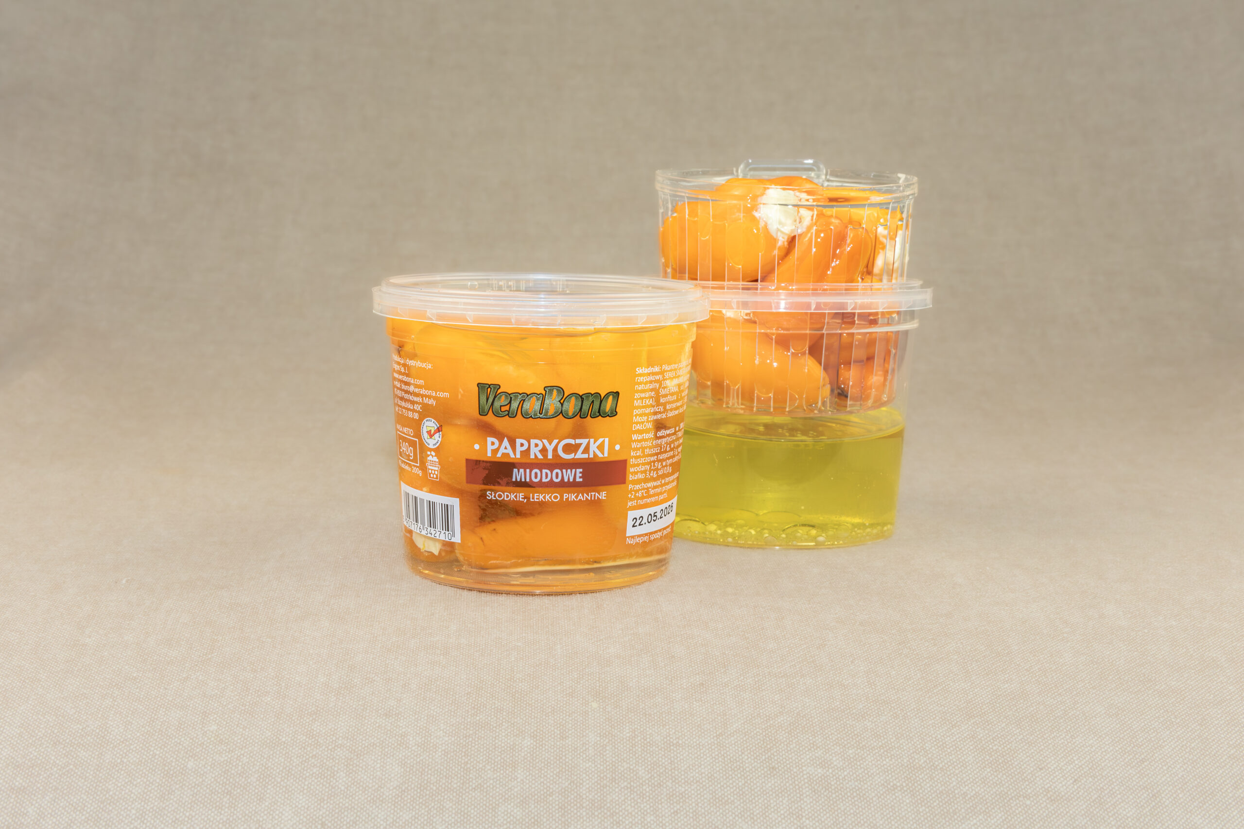 Papryczki miodowe z serem śmietankowym i konfiturą z pomarańczy w oleju w wygodnym kubeczku z koszyczkiem. Dostępne w formatach: Kubeczek 200g/340g